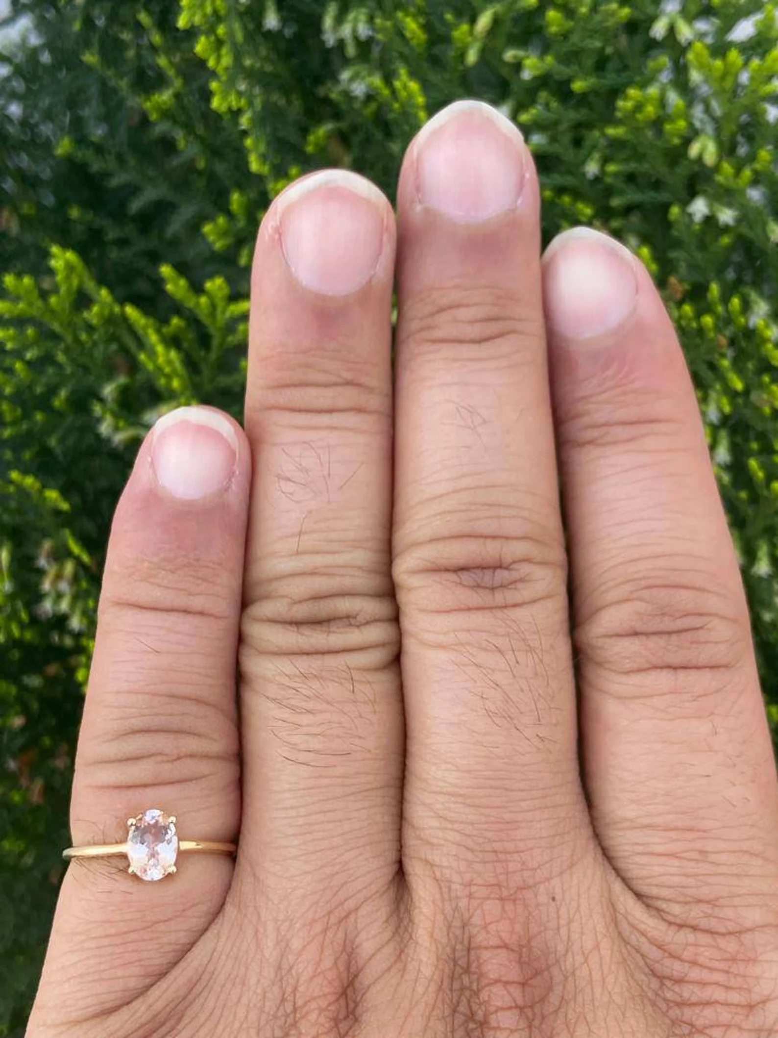 Crafted with 14k real solid gold, this ring offers both beauty and durability. The understated design and the natural Morganite make it a versatile piece that pairs well with other jewelry or stands out on its own. Whether you’re gifting it to someone special or treating yourself, this Morganite ring is a charming addition to any collection.