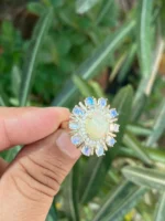 Opal is known for its mystical properties, often symbolizing creativity, inspiration, and emotional balance. The combination of opal and moonstone creates a harmonious, magical feel, making this ring a perfect choice for those who appreciate both beauty and meaning in their jewelry. Whether worn for everyday elegance or special occasions, this ring will add a colorful, radiant touch to any outfit.
